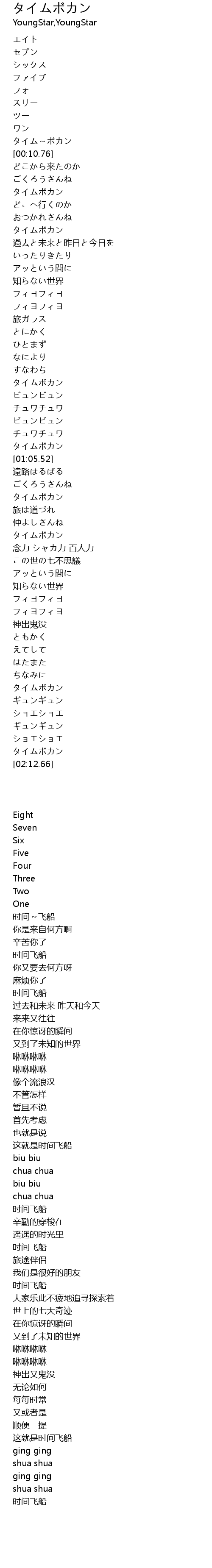 | [02:00.66] | タイムボカン |