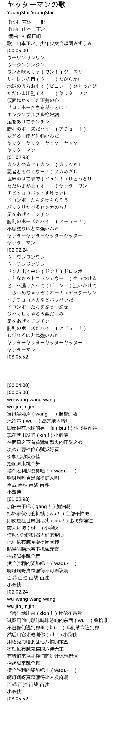 | [02:26.95] | こらしめちゃうぞ(オー!)ヤッターワン |