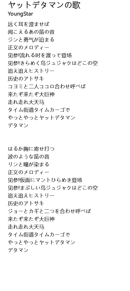 | 歌曲 | ヤットデタマンの歌 |