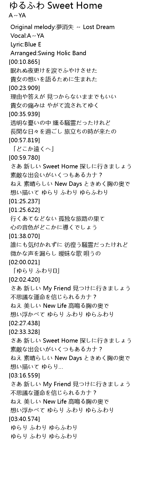 | [02:51.965] | さあ 新しい Sweet Home 探しに行きましょう |