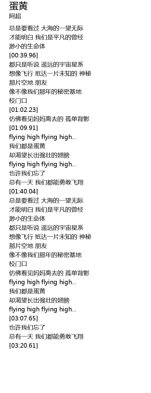 | [01:35.53] | 总有一天 我们都能勇敢飞翔 |