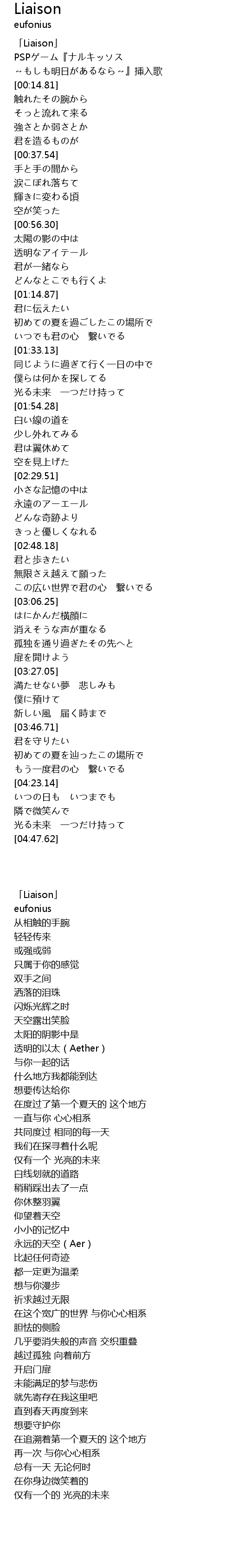 | [00:05.02] | PSPゲーム『ナルキッソス ~もしも明日があるなら~』挿入歌 |