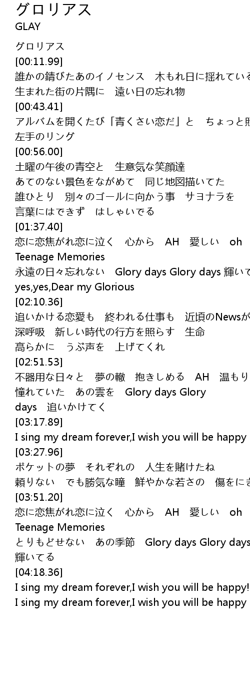 | [00:00.38] | グロリアス |