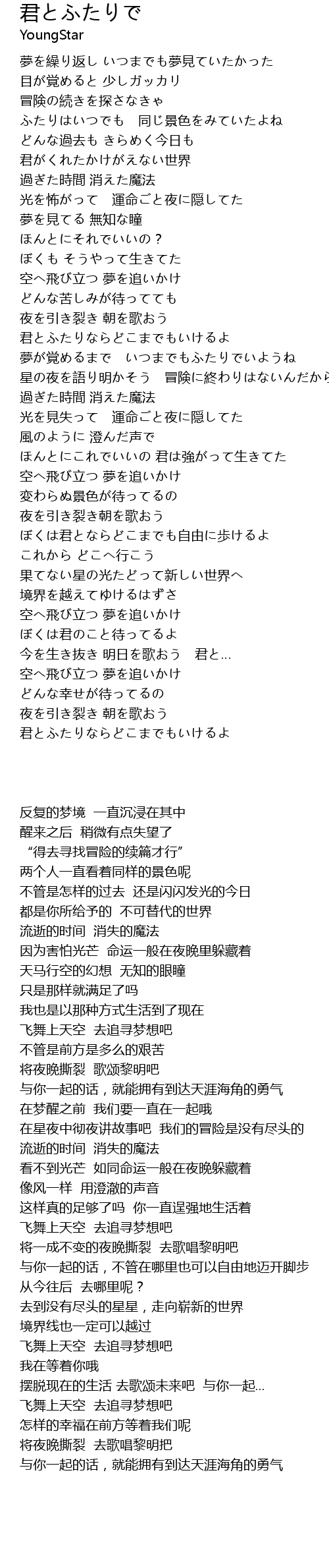 | [02:21.44] | 星の夜を語り明かそう 冒険に終わりはないんだから |
