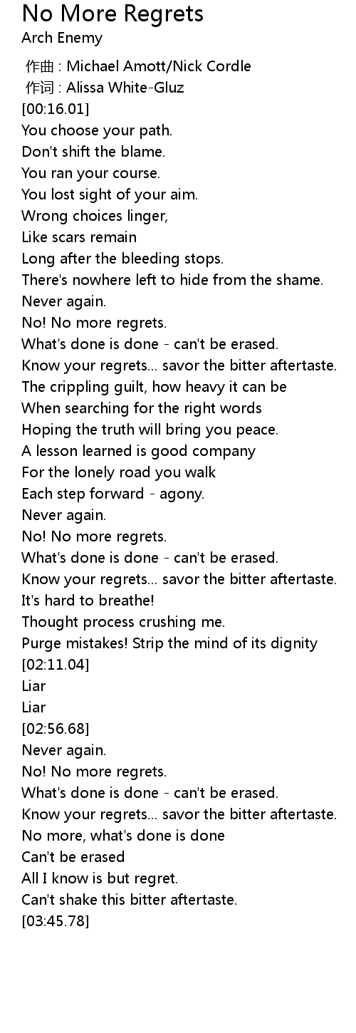 | [03:16.71] | Know your regrets... savor the bitter aftertaste. |