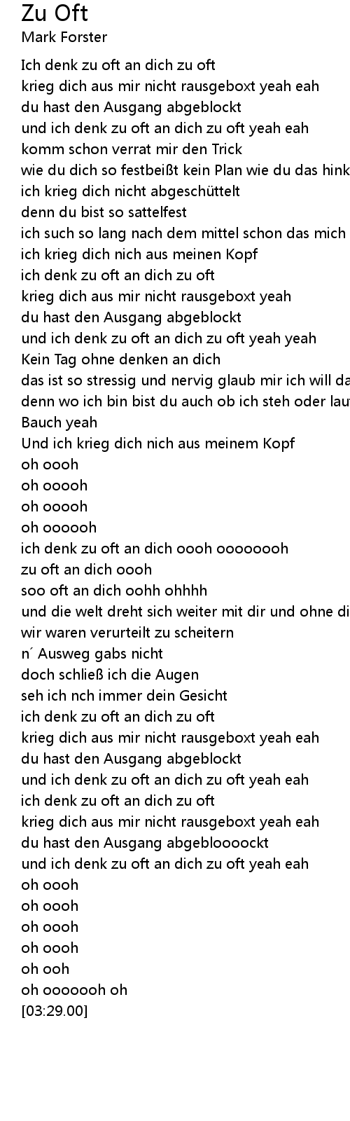 | [01:40.25] | soo oft an dich oohh ohhhh |