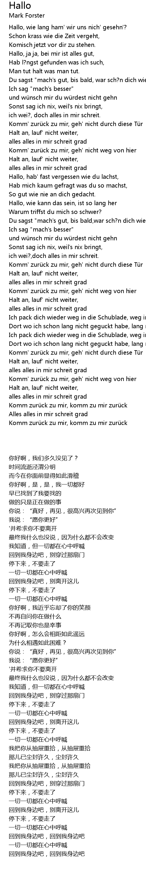 | [01:19.61] | Hallo, hab' fast vergessen wie du lachst, |