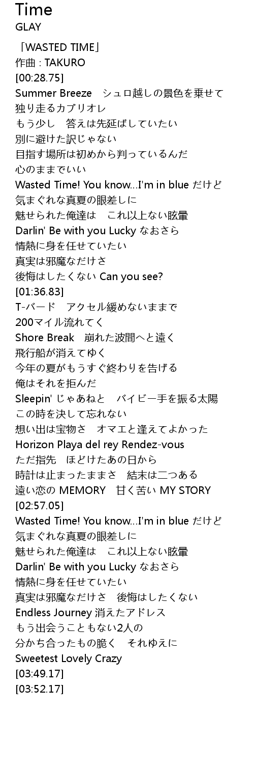 | [03:09.53] | Wasted Time! You know…I'm in blue だけど |