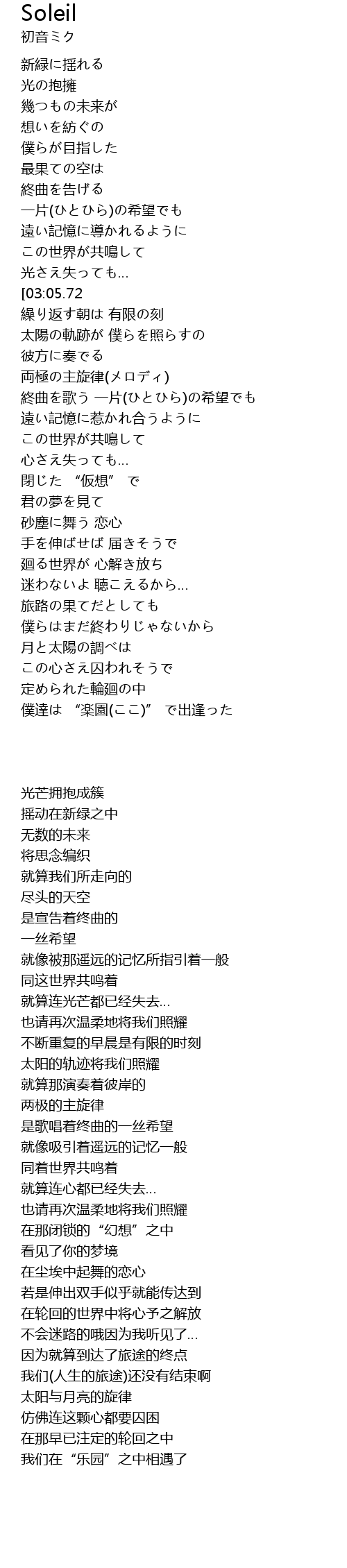 | [02:24.06] | 太陽の軌跡が 僕らを照らすの |