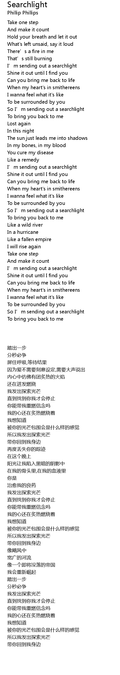 | [00:35.37] | I' m sending out a searchlight |