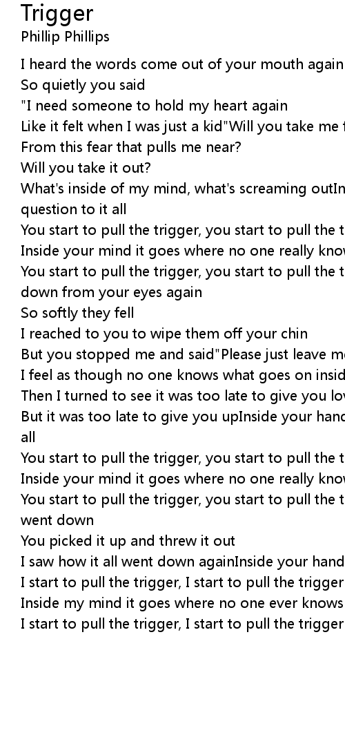You start to pull the trigger, you start to pull the triggerI saw the tears roll down from your eyes again