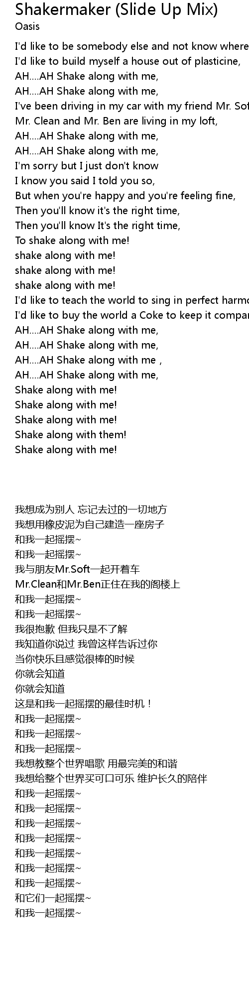 | 歌曲 | Shakermaker (Slide Up Mix) |