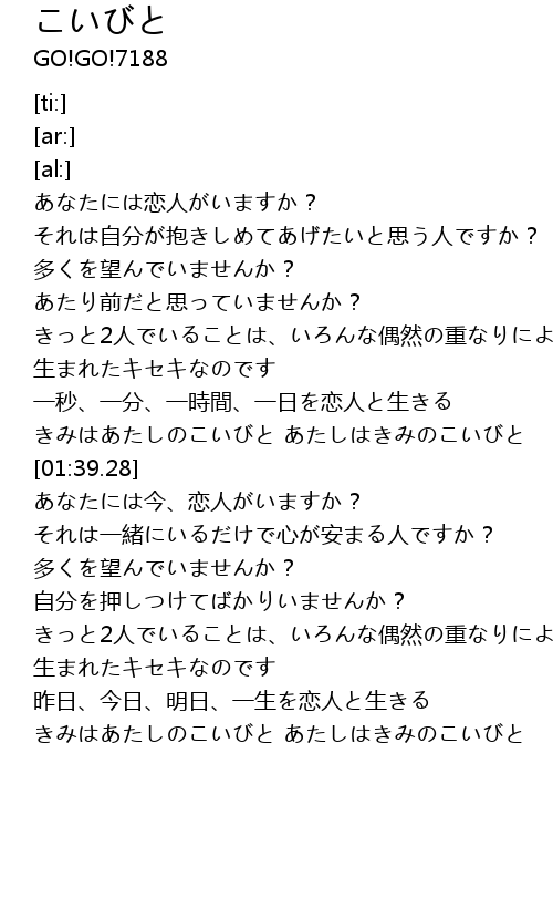| [01:30.71] | きみはあたしのこいびと あたしはきみのこいびと |