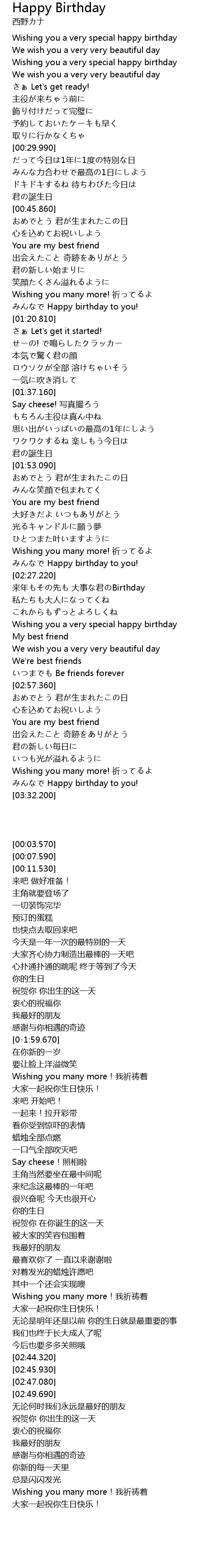 | [03:23.370] | Wishing you many more! 祈ってるよ |
