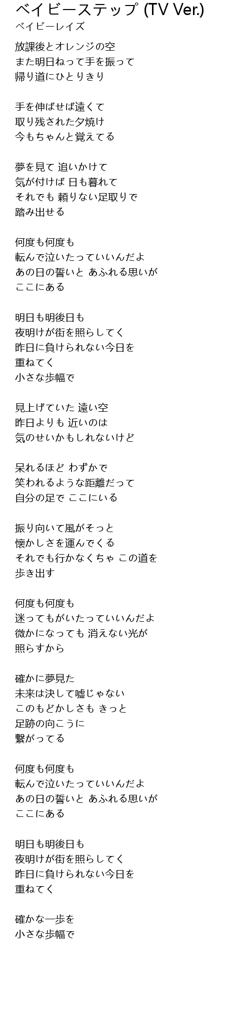 | 歌曲 | ベイビーステップ (TV Ver.) |