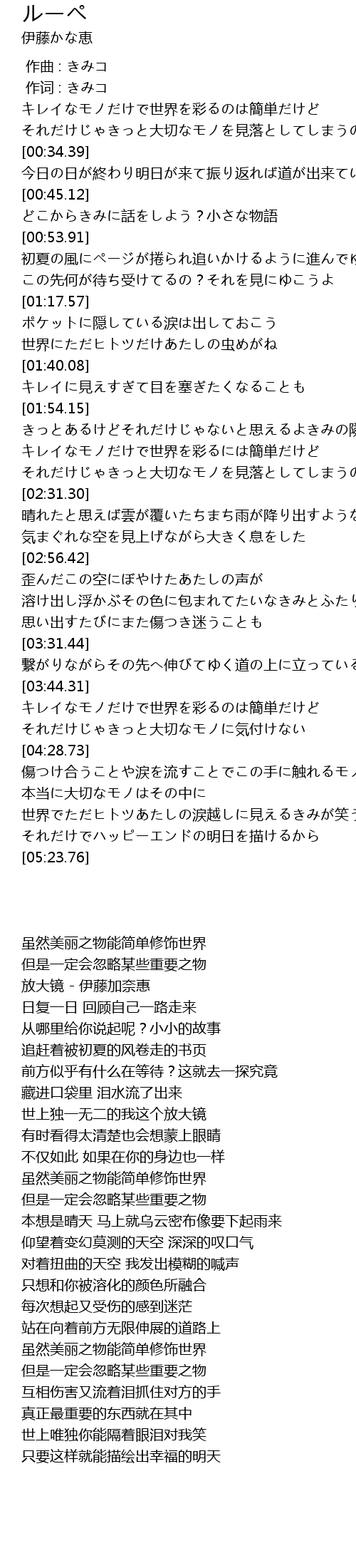 | [00:25.55] | 放大镜 - 伊藤加奈惠 |