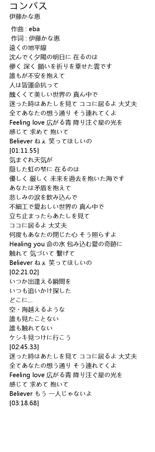 | [02:16.84] | Believer ねぇ 笑ってほしいの |