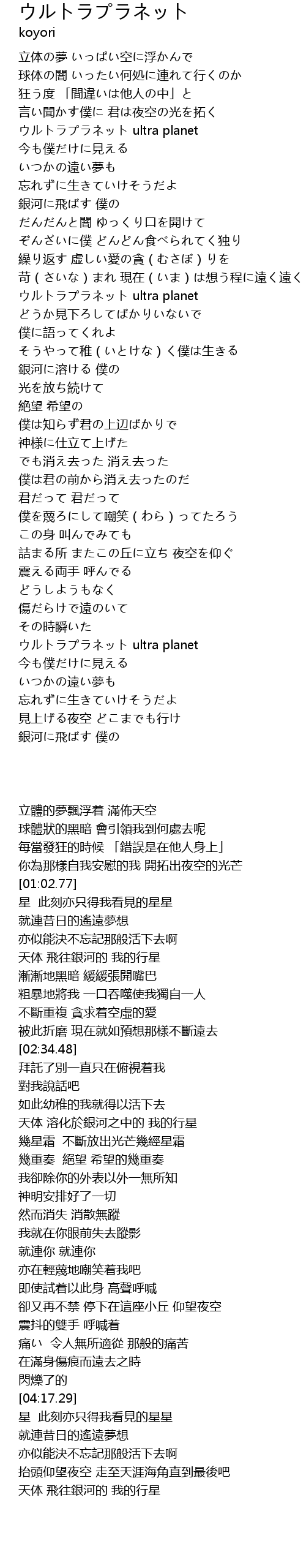 | [02:58.68] | 天体 溶化於銀河之中的 我的行星 |