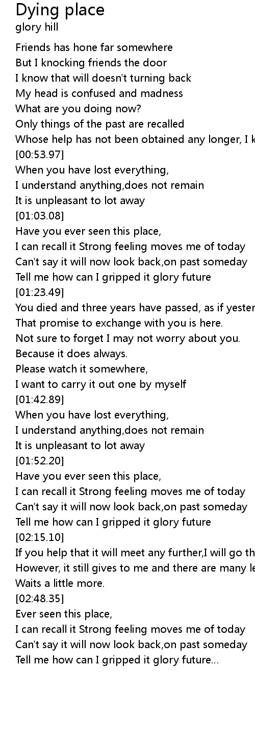 | [02:07.68] | Tell me how can I gripped it glory future |