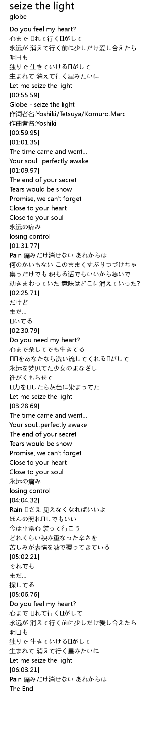 | [00:57.95] | 作词者名:Yoshiki/Tetsuya/Komuro.Marc |