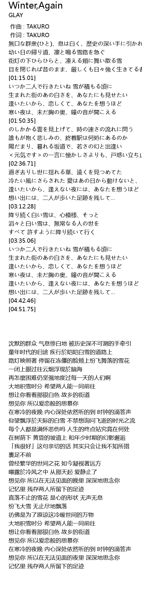 | [03:48.67] | 大地积雪时分 希望两人能一同前往 |