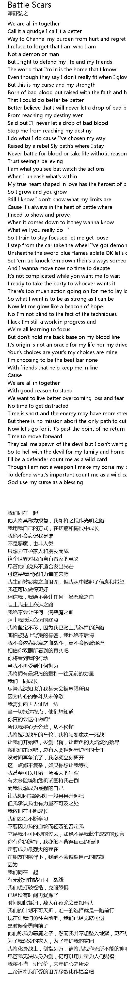 | 歌曲 | Battle Scars |