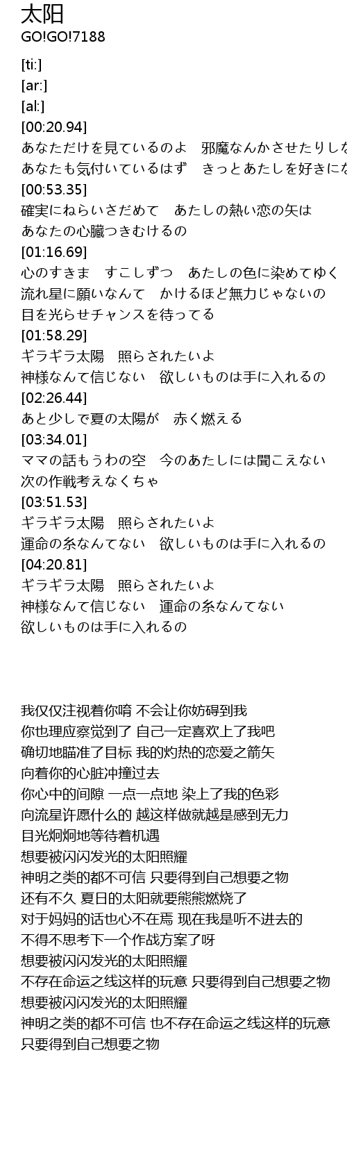 | [04:20.96] | 想要被闪闪发光的太阳照耀 |