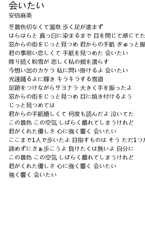 | 君の事思い恋しくて 手紙を見つめた 会いたい | |