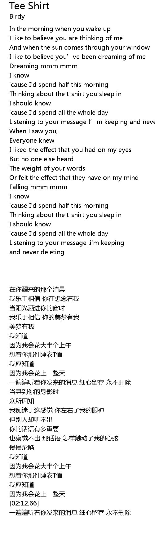 | [02:00.18] | Thinking about the tshirt you sleep in |