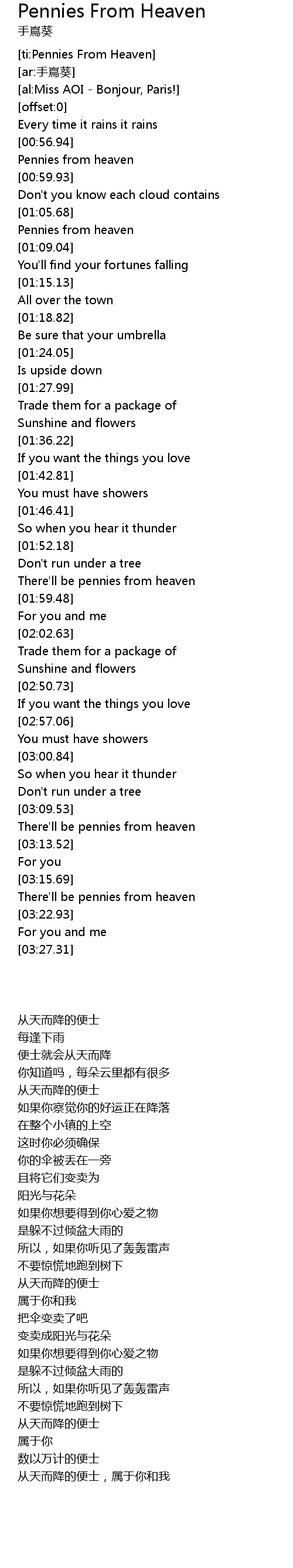 | [03:23.80] | 从天而降的便士,属于你和我 |