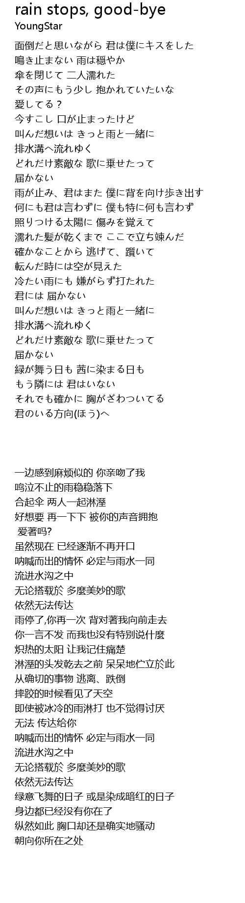 | [02:35.39] | 淋溼的头发乾去之前 呆呆地伫立於此 |