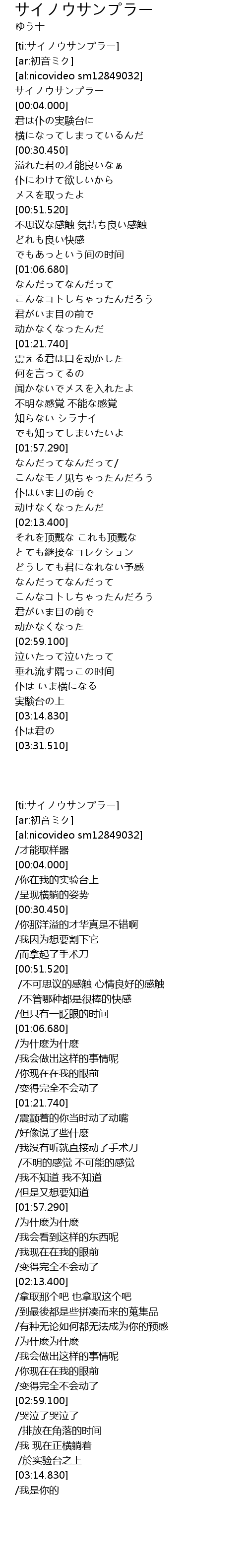 | [01:37.980] | 闻かないでメスを入れたよ |