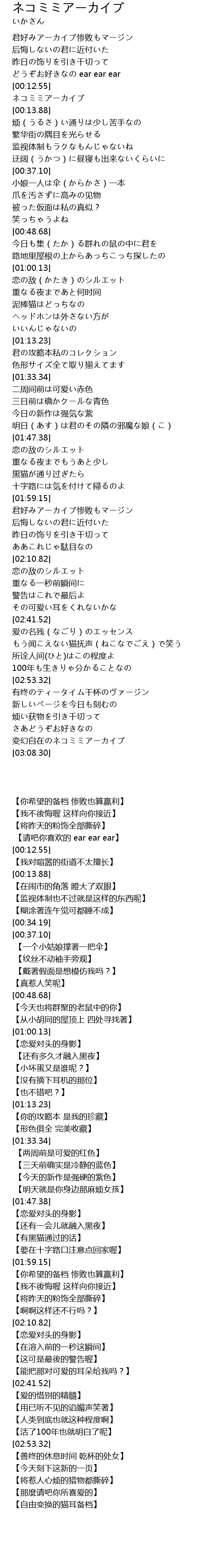 | [03:04.41] | 変幻自在のネコミミアーカイブ |