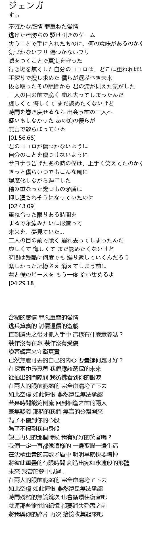 | [00:31.73] | 不確かな感情 罪重ねた愛情 |