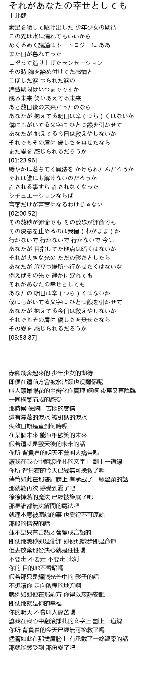 | [03:23.45] | それがあなたの幸せとしても |