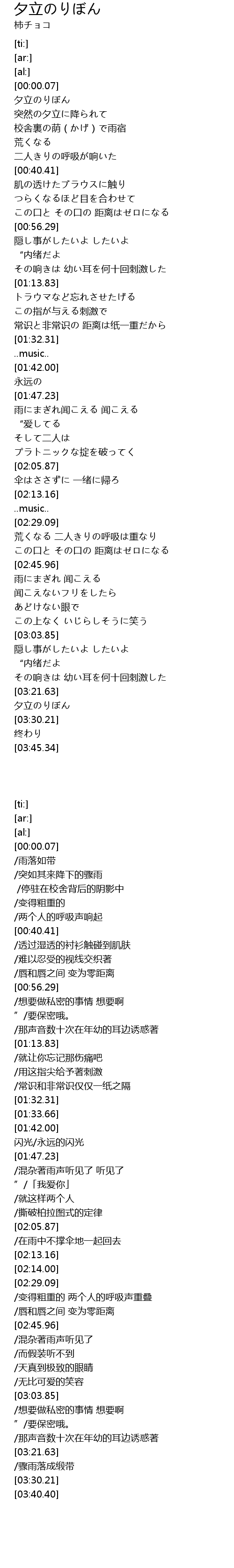 | [03:25.79] | 夕立のりぼん |