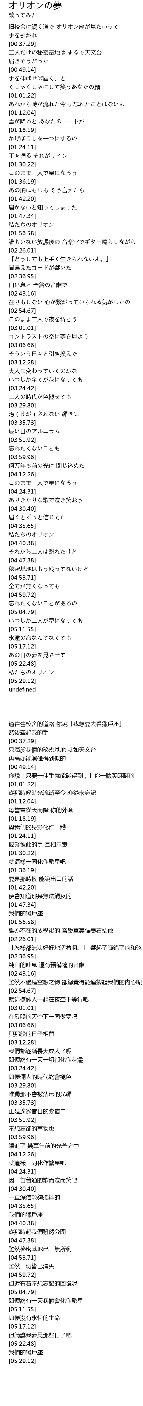 | [00:25.43] | 通往舊校舍的道路 你說「我想要去看獵戶座」 然後牽起我的手 |