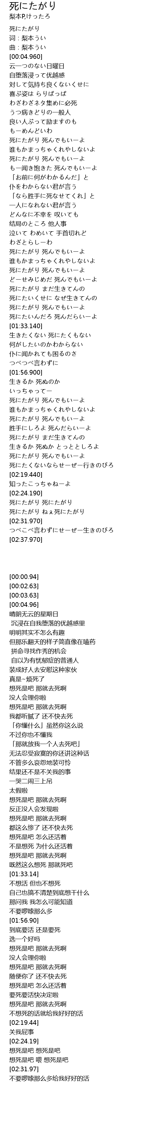 | [02:08.970] | 死にたがり まだ生きてんの |