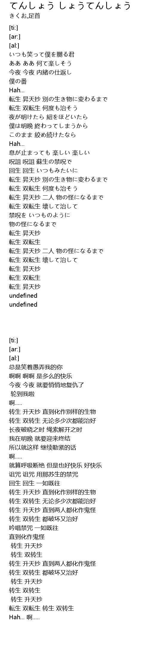 | [03:19.88] | 転生 昇天抄 |