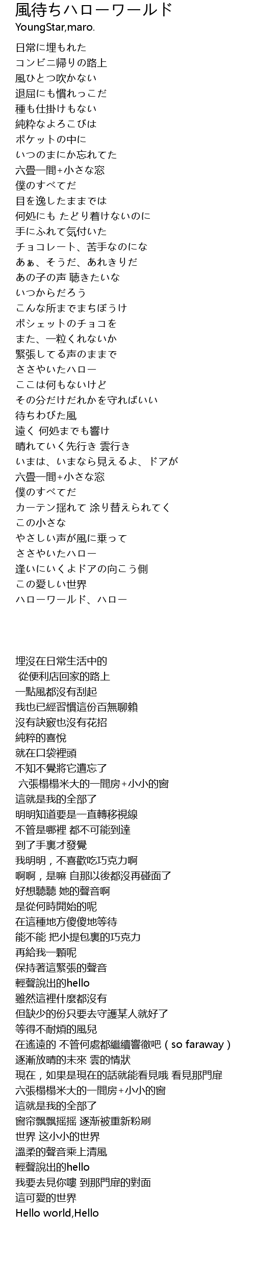 | [01:12.69] | 六張榻榻米大的一間房+小小的窗 |