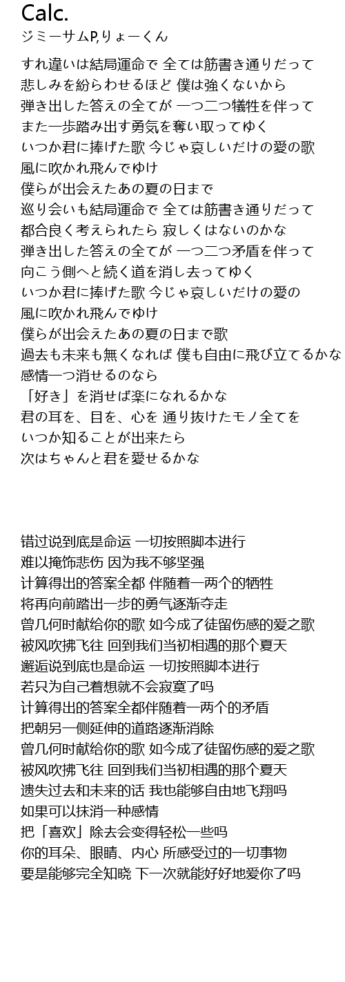 | [00:22.18] | すれ違いは結局運命で 全ては筋書き通りだって |