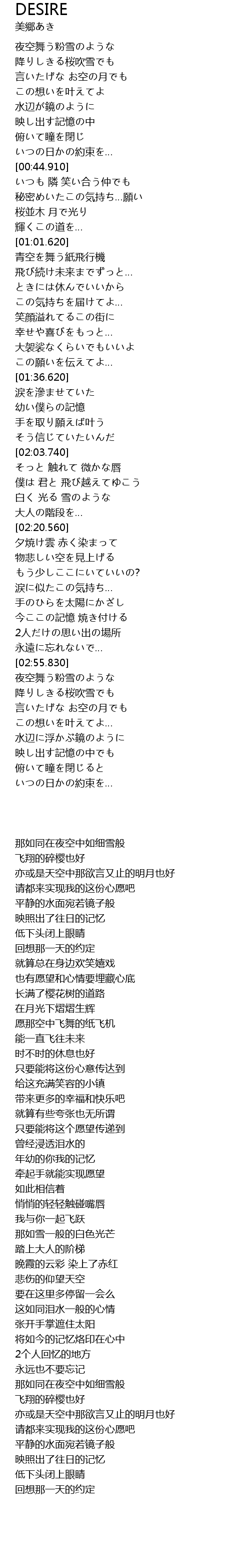 | [00:49.430] | 也有愿望和心情要埋藏心底 |