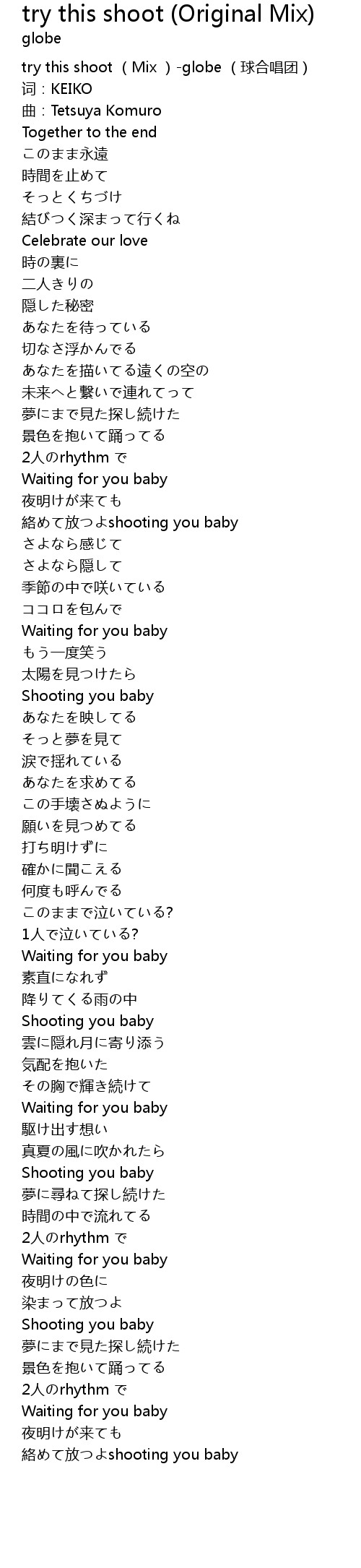 | [00:00.00] | try this shoot (Mix )-globe (球合唱团) |