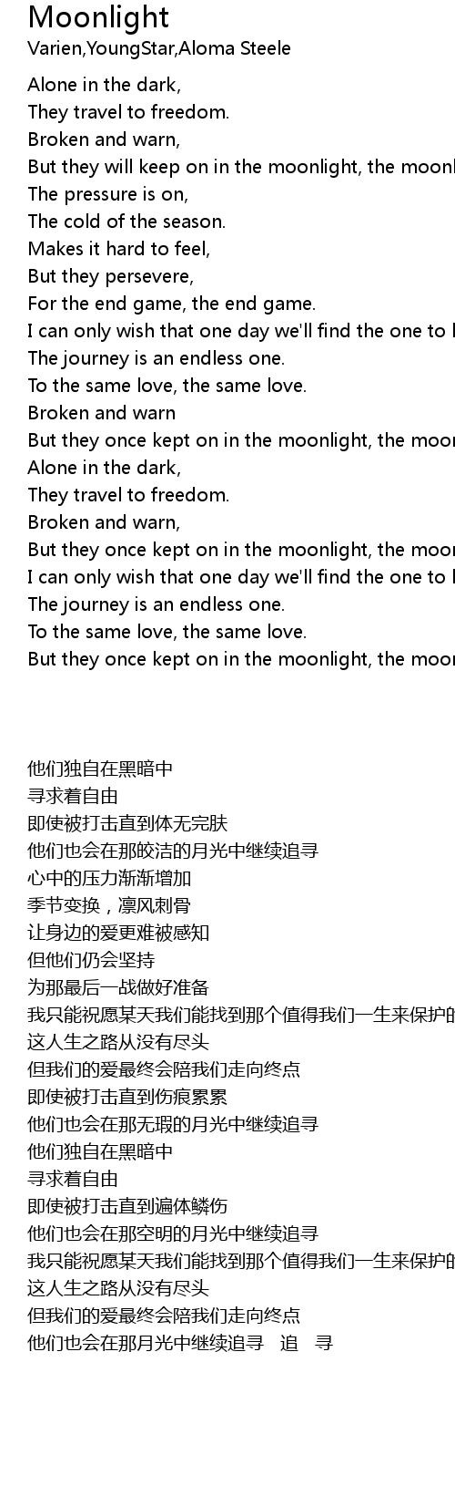 But they once kept on in the moonlight, the moonlight. |