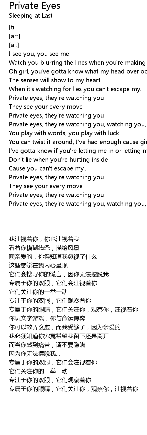 Private eyes, they're watching you, watching you, watching you |