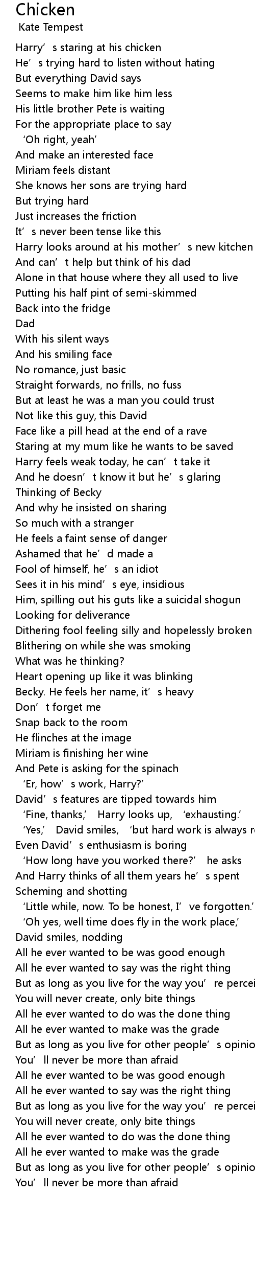 | [02:18.65] | All he ever wanted to say was the right thing |
