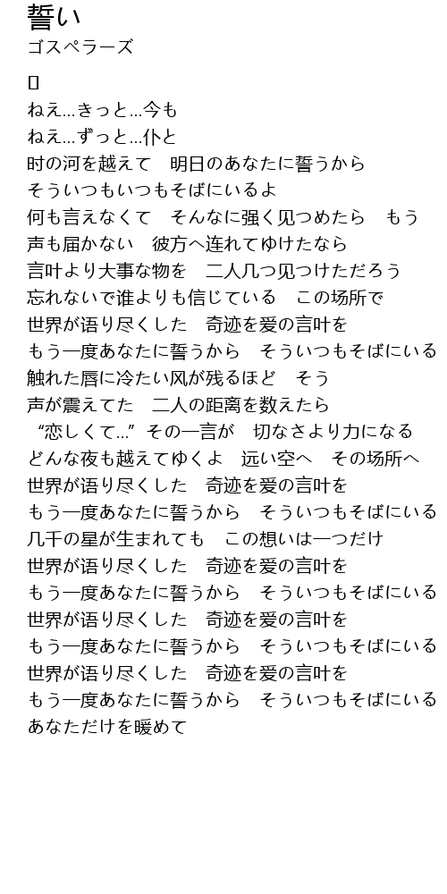| もう一度あなたに誓うから そういつもそばにいる | |