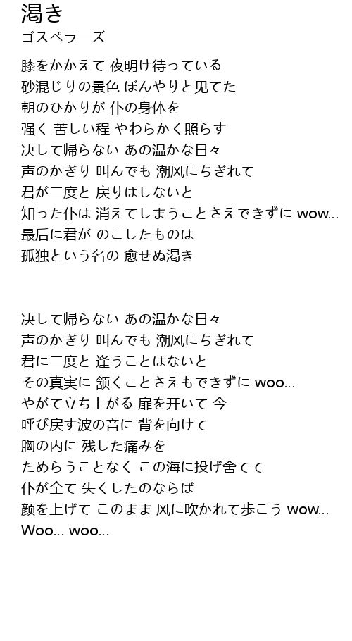 | 声のかぎり 叫んでも 潮风にちぎれて | |
