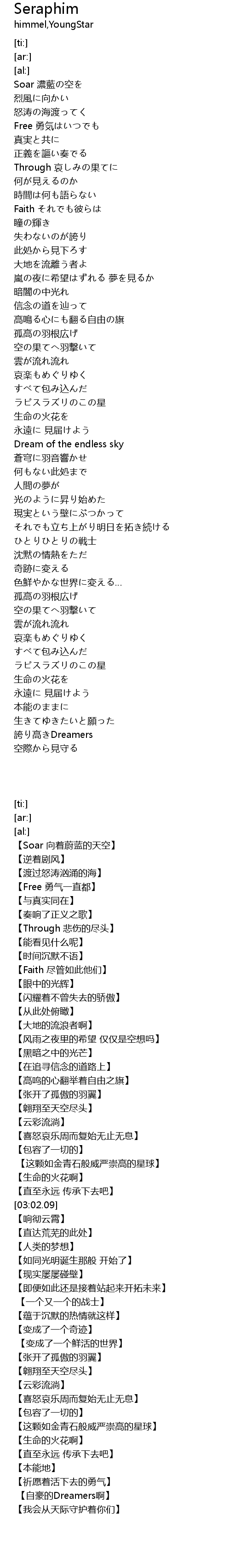 | [02:18.09] | 【张开了孤傲的羽翼】 |