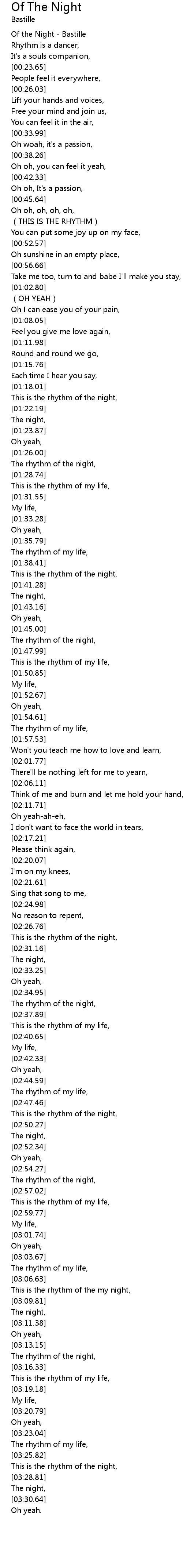 | [02:48.16] | This is the rhythm of the night, |